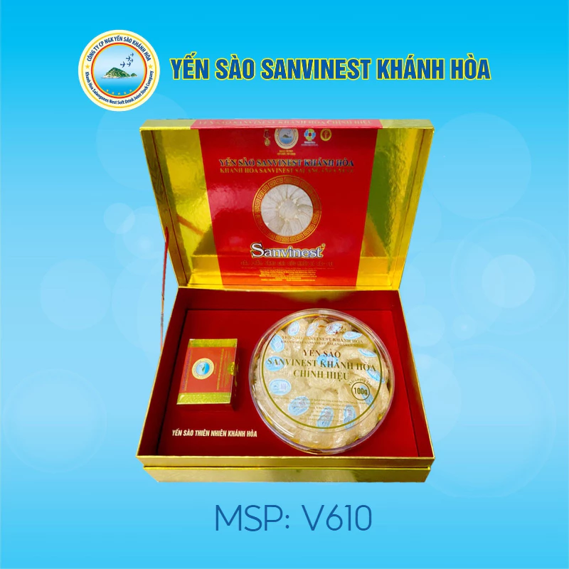Hộp Yến sào Sanvinest Khánh Hòa Chính hiệu – Tổ yến sào tinh chế nguyên chất 100gr + Hộp yến tinh chế 3gr.