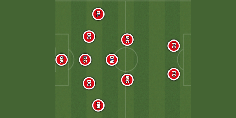 - Hai tiền đạo: Một trung phong cắm hoạt động trong vòng cấm và một tiền đạo lùi có nhiệm vụ kết nối lối chơi.