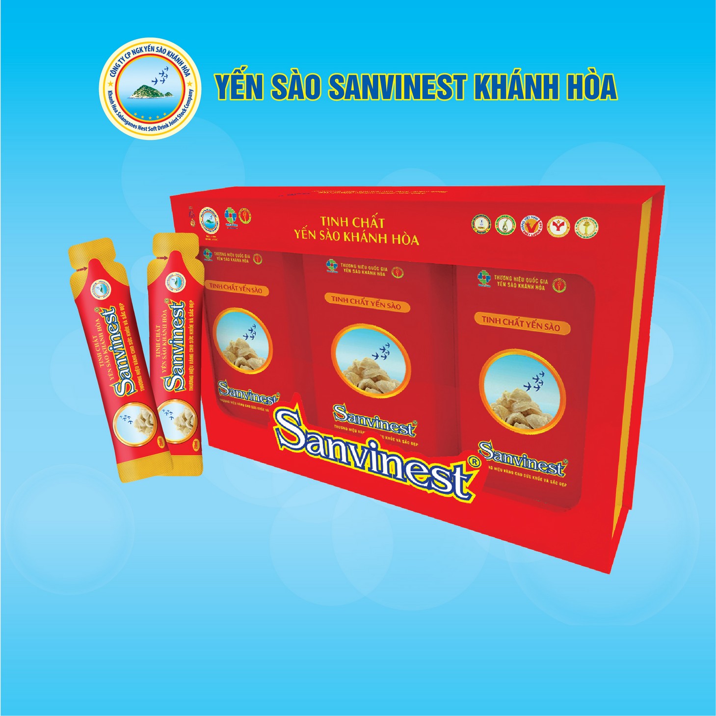 * Tinh chất Yến sào Khánh Hòa Sanvinest được sản xuất từ nguồn Yến sào thiên nhiên Khánh Hòa kết hợp với Fucoidan, Vitamin B và Chất xơ.